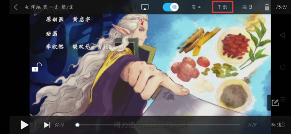 3.当视频处于横屏之后,点击视频中间显示功能菜单,选择右上角的“下载”,注意不是所有的视频都可以下载,部分影视没有下载途径;