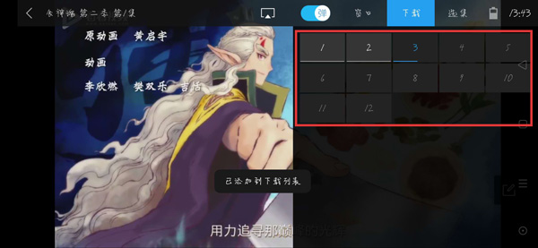 4.然后选择需要下载的集数,点击后会弹出“已添加到下载列表”,表示当前正处于视频下载,下载中的视频会在集数中显示蓝色进度条,灰色表示已下载完成;