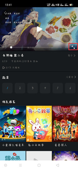 2.进入视频播放页面之后,点击上方视频播放窗口的“放大”按钮,横屏播放视频;