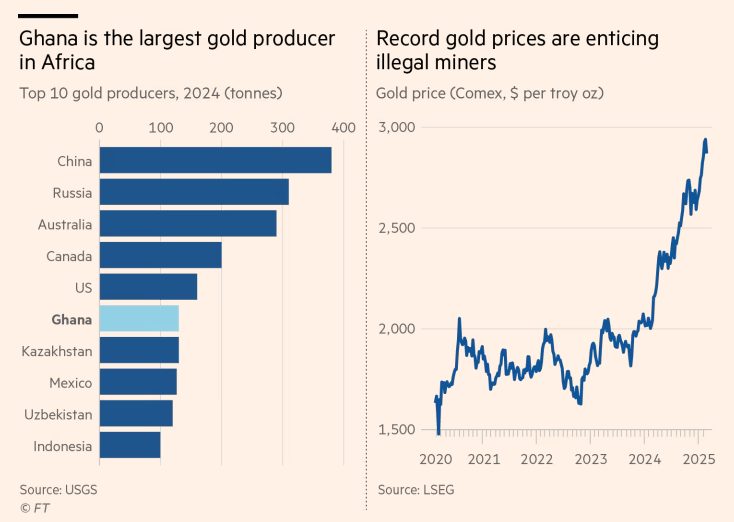 加纳是非洲最大的黄金生产国,这个国家受到的破坏是金价创历史新高引发的连锁效应的一个有力例证,大量交易商抢购这种贵金属以保护自己免受地缘政治动荡和特朗普总统关税威胁的影响。