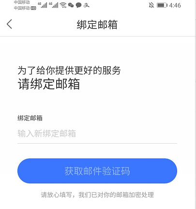 5、点击进入通过验证手机号码进入绑定邮箱。