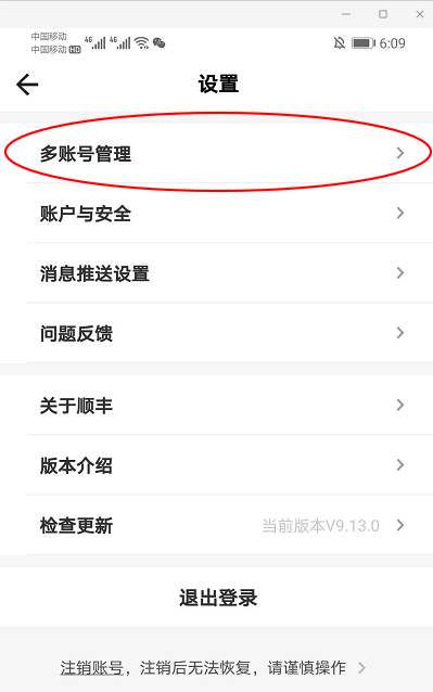 顺丰速运app怎么管理多账号