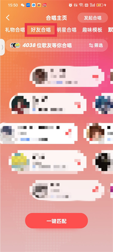 2.进入到合唱的页面之后点击【好友合唱】;