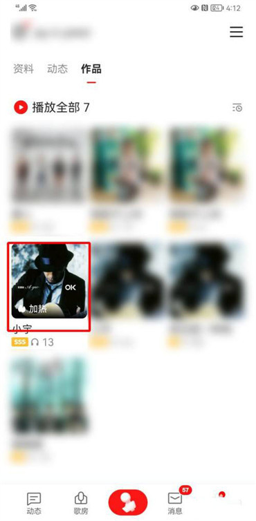 1.首先打开全民K歌软件进入到全民K歌页面之后点击自己唱的歌曲;