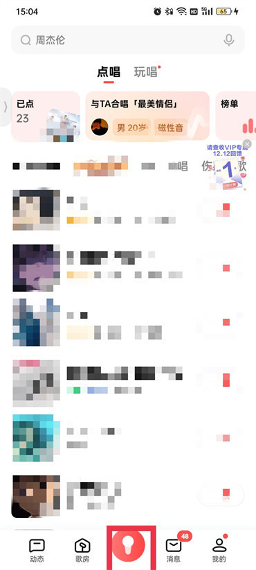 1.首先打开全民K歌软件进入到该页面之后点击中间的【话筒】图标;
