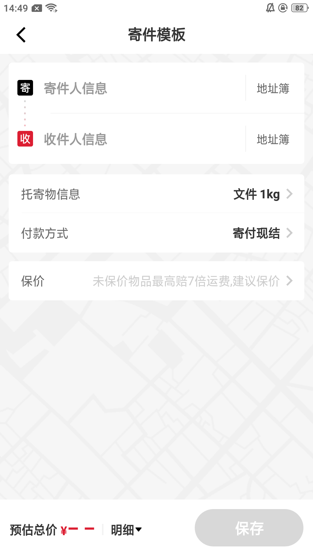 3、在添加寄件模板中,输入收件人和寄件人信息后点击保存即可。