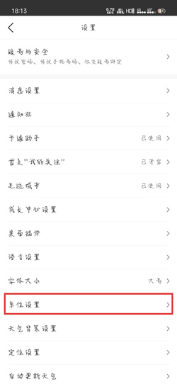 3.在设置中找到【单位设置】选项,进入设置各个数据的单位;