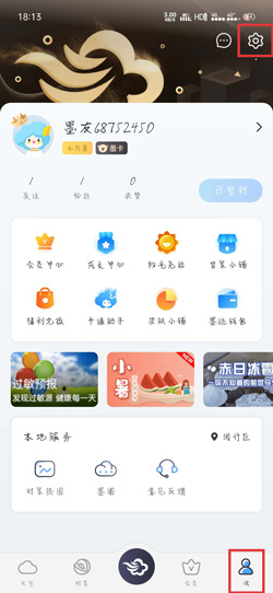 2.进入我的页面后点击右上角的【设置】,也就是齿轮按钮;