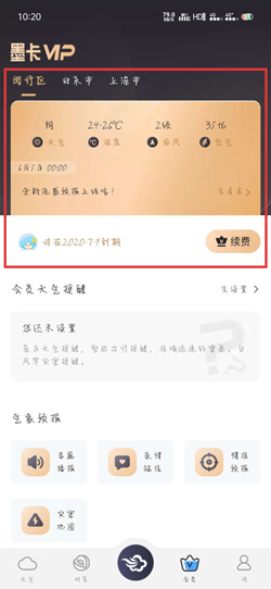 1.墨迹天气的免费会员只能领取为时3天的VIP会员,超过3天之后,会员自动过期需要充值续费才可以。