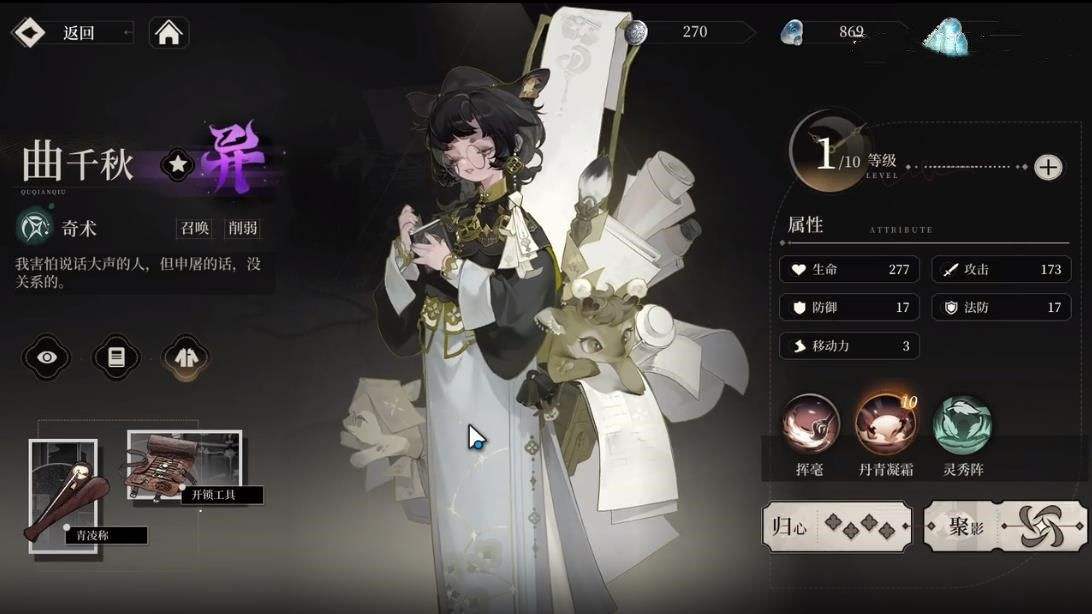 《野火流明》之曲千秋角色深度解析与培养指南。在这篇文章中,我们将聚焦于这位罕见奇术大师——曲千秋。作为天尘会蓬莱山流云观方术士,她拥有独特的战斗技能,并被任命为第41任天尘会会长。本文将详细介绍曲千秋的角色背景、技能特点以及如何培养她的战斗力,带您领略这位角色的独特魅力。