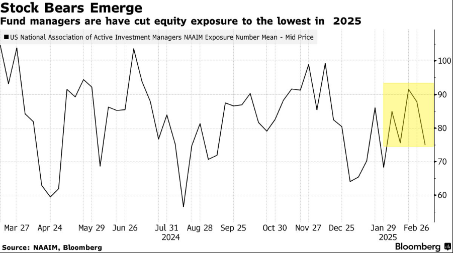 根据高盛截至3月7日当周的大宗经纪报告,对冲基金一直在大举平仓,多空股票比率降至2019年以来的最低水平。华尔街出现了更多看空者,摩根士丹利的迈克尔-威尔逊(Michael Wilson)是最新一位对经济增长忧虑敲响警钟的人。