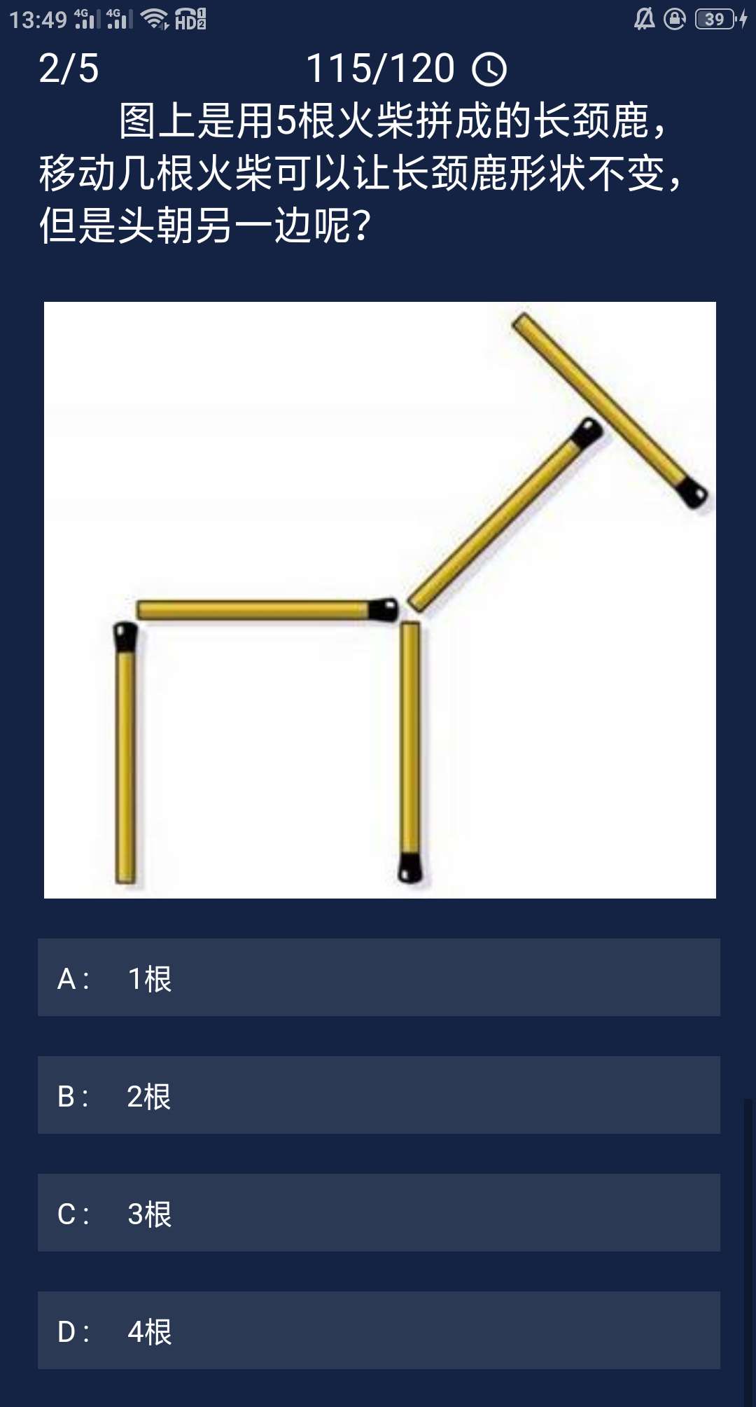 正确答案:A(1根)