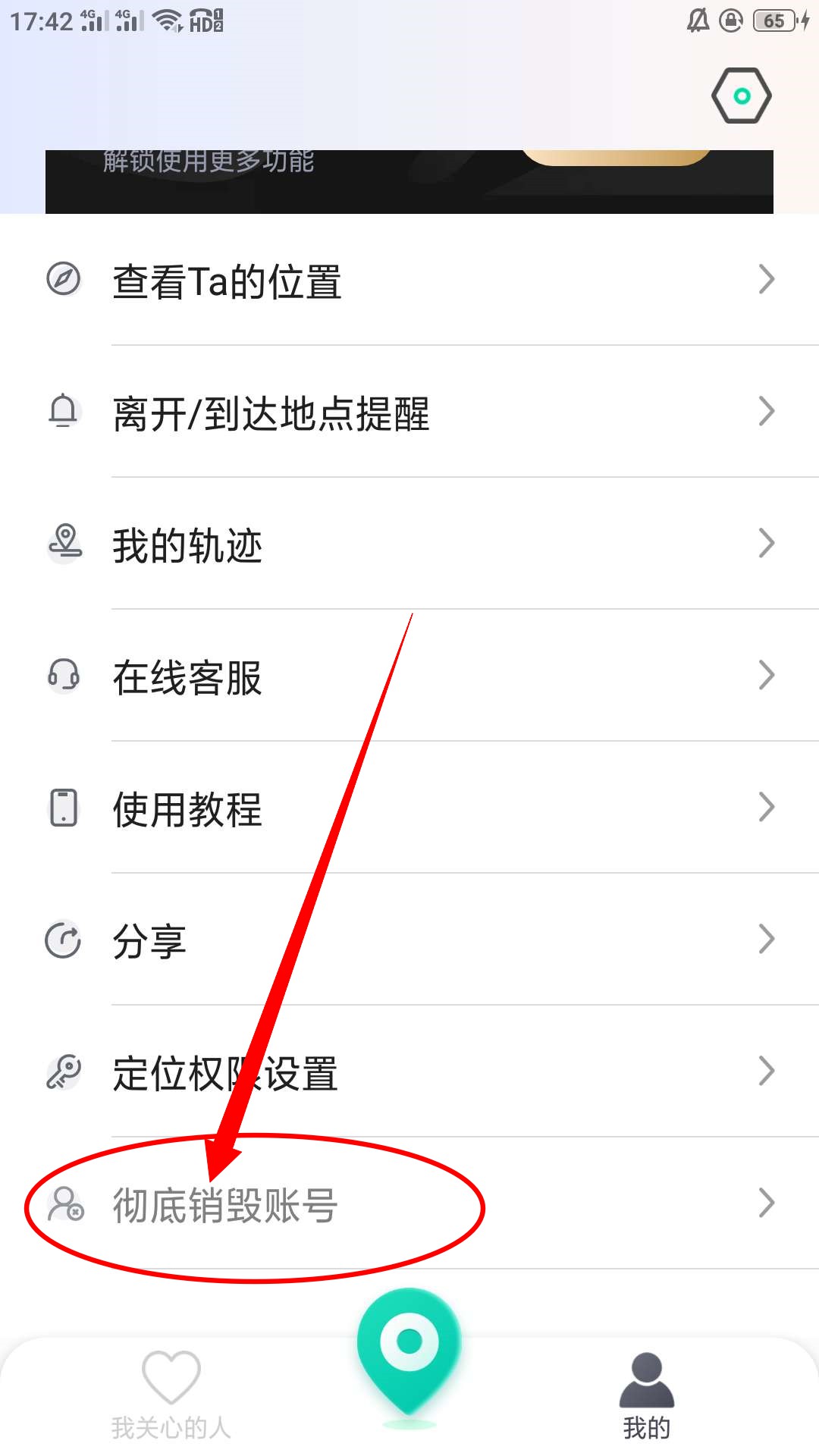 2、在(我的)界面下拉找到彻底销毁账号,点击进入。