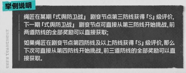 原本绳匠们每期【式舆防卫战】都要打7个防线才能拿满奖励,版本更新后,根据绳匠们上期挑战的【S】级记录,绳匠们最快可以从【第四防线】开启挑战啦!