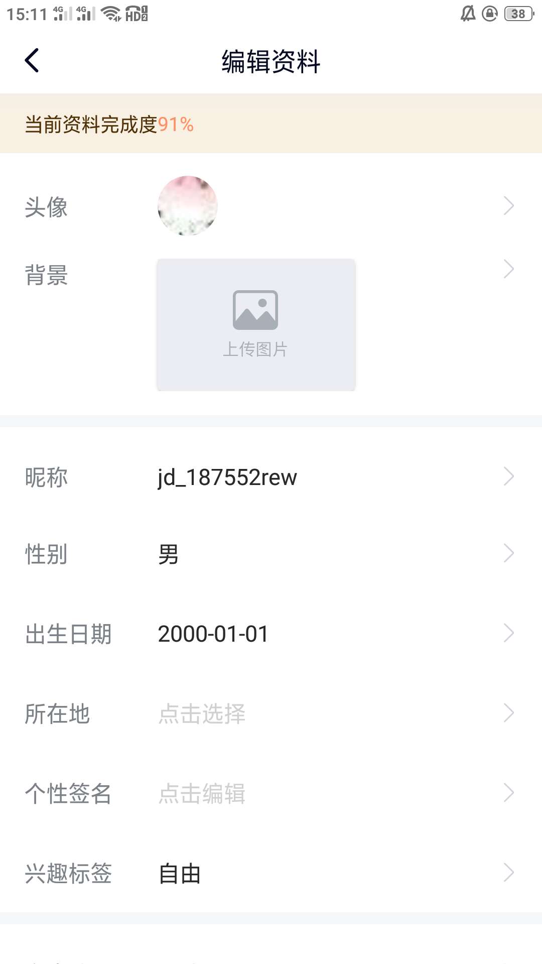 7、点击后即可计入修改信息的界面(界面和设置中的修改个人资料一致)。