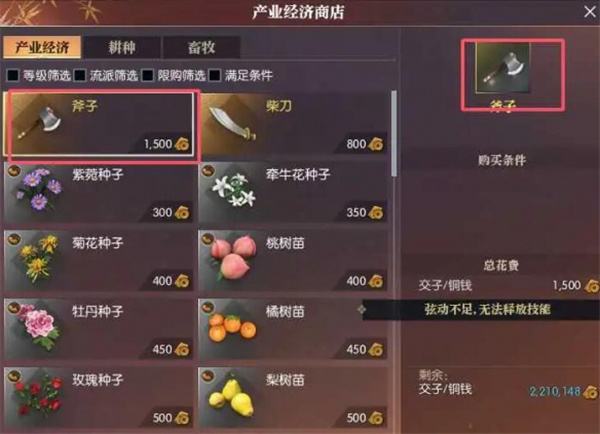 2、进入商店后购买一把【斧头】,装备好斧头去砍菩提树;