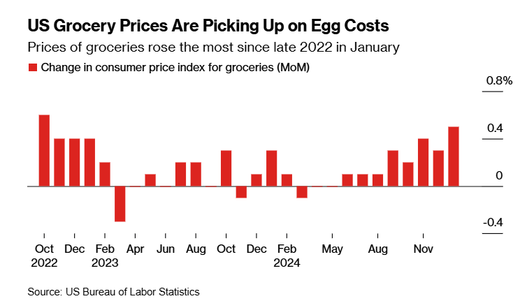 由迭戈·安索阿特吉(Diego Anzoategui)领导的摩根士丹利经济学家上周写道:“2月份鸡蛋价格继续上涨,批发食品价格持续以更快的速度上涨。”他们还补充说,预计食品杂货通胀至少在整个夏季都将高于疫情前的趋势。