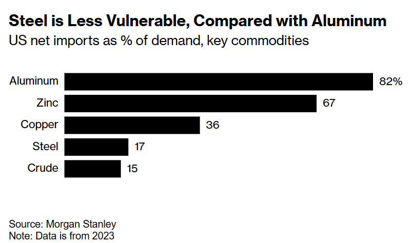 美国最大的钢铁制造商,包括纽柯公司(Nucor Corp.)、美国钢铁公司(United States Steel Corp.)、克利夫兰-克里夫斯公司(Cleveland-Cliffs Inc.)和钢铁动力公司(Steel Dynamics Inc),上周敦促特朗普“抵制”豁免的呼吁,警告说之前的豁免导致进口激增、价格下降、利润萎缩。在豁免之前,特朗普2018年的关税被认为有助于提高钢铁和铝的价格,并减少进口。