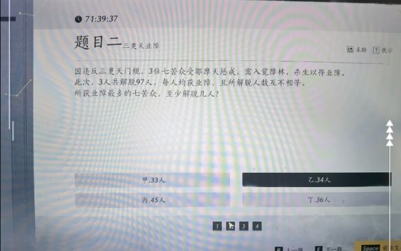 2、问题:因违反三更天门规,3位七苦众受耶摩天惩戒,需入觉障林,杀生以得业障此次,3人共解脱97人,每人均获业障,且所解脱人数互不相等。所获业障最多的七苦众,至少解脱几人?