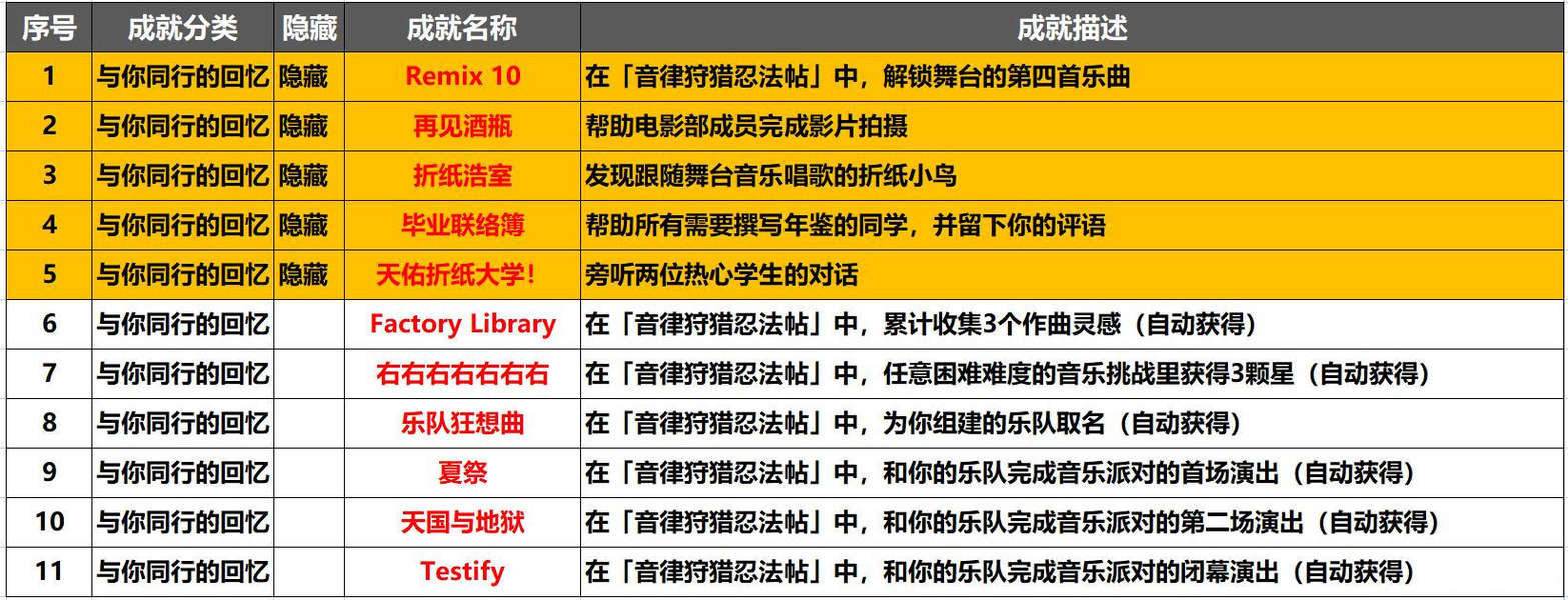 (1)完成活动全部9首音乐的第3难度【进阶试炼】后,即可获得该成就
