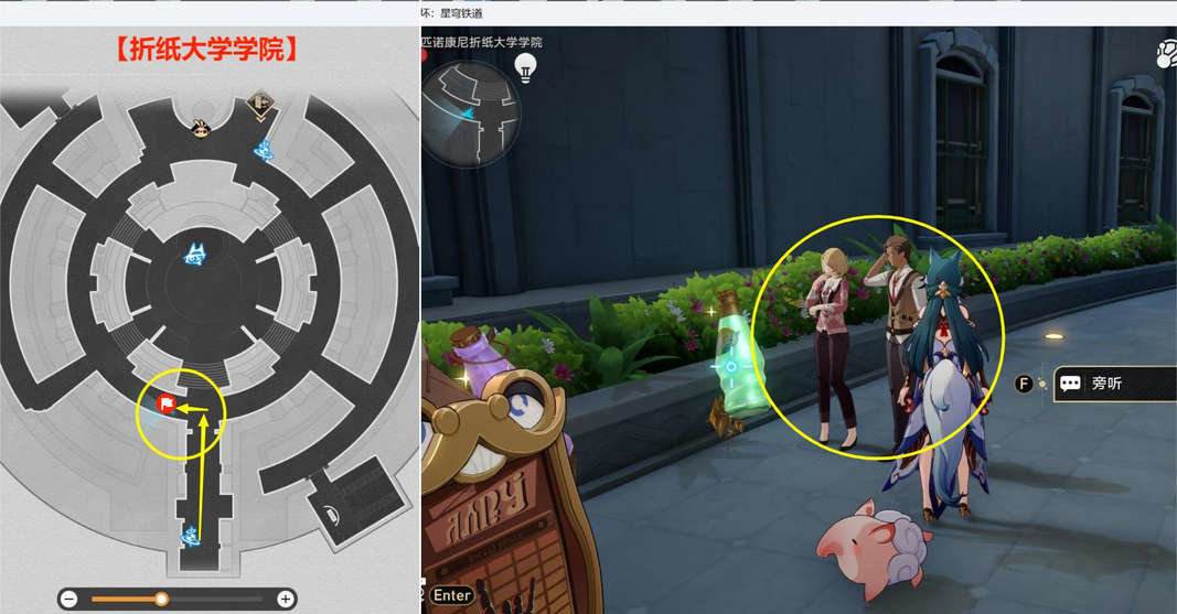 (1)完成活动后,来到【折纸大学学院】下图位置,选择【旁听】后,即可获得该成就
