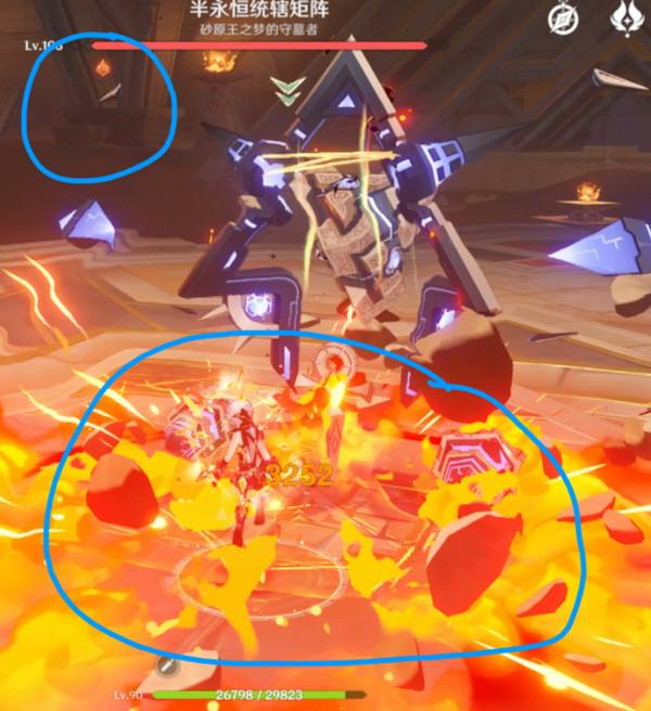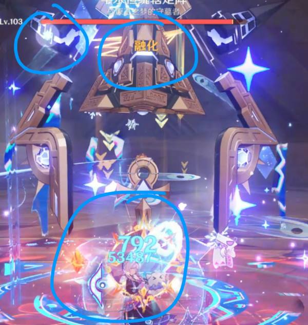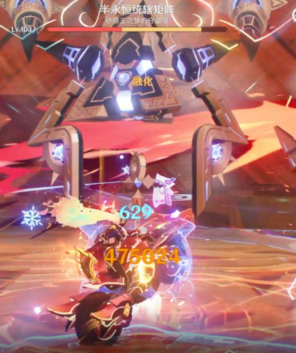 此时班尼特eq或q会给怪物挂上强火元素,重点来了,元素反应克制关系中,火是克冰的,消耗的元素量翻倍