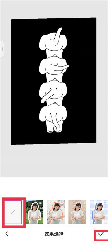 7.然后来到效果选择,不选择任何效果然之后点击【对号】图标;