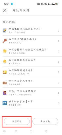 3、在帮助反馈页面点击左下角的【反馈问题】功能;