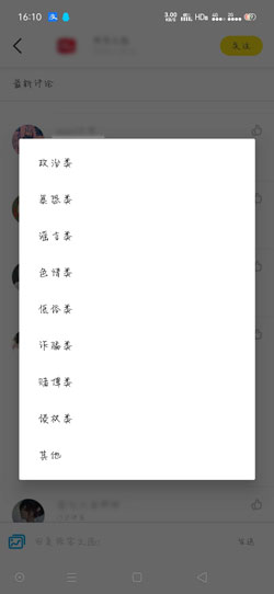 2、选择一个举报类型,点击即可举报该评论,等待官方审核后就可以删除该评论。