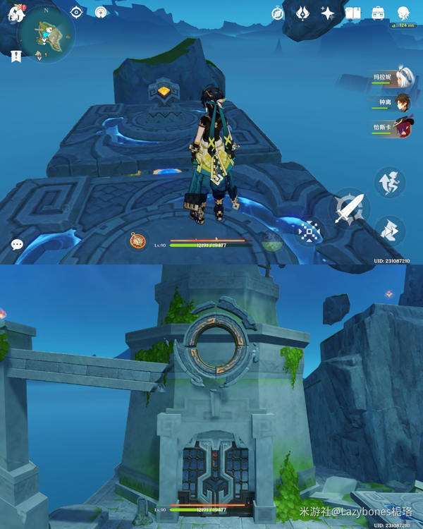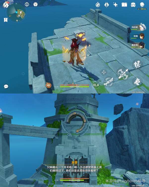 完成第二个解密后掉头,可以附身瞑视龙,爬电梯到山顶处,启动第三个机关