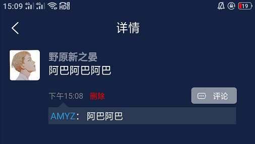 3、在动态详情页下方,可以看到删除,点击删除即可。