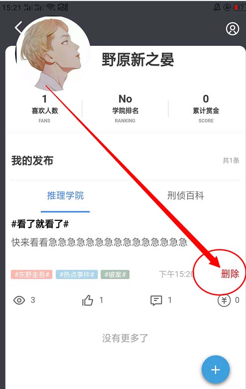 3、在主页找到想要删除的帖子,点击右下方的删除即可。