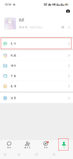 1、打开微信,在下方的功能栏中点击【我】,然后点击【支付】;