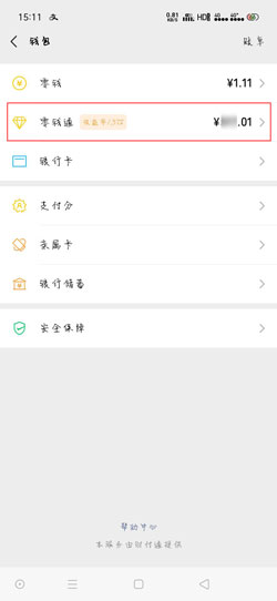 3、点击【零钱通】;