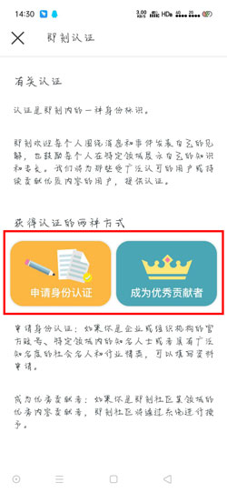 4、选择我们需要认证的方式:身份认证、优秀贡献者认证,提供材料申请认证即可,其中优秀贡献者目前无法直接申请,只能官方授予认证。