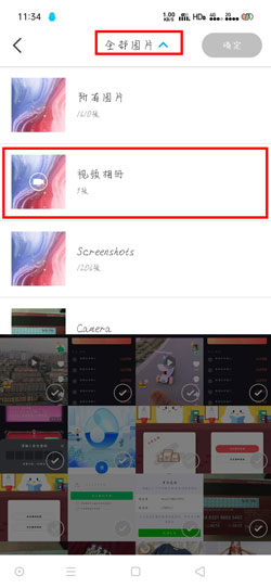 3、点击上方的“全部图片”,将选择的类型切换为【视频相册】;