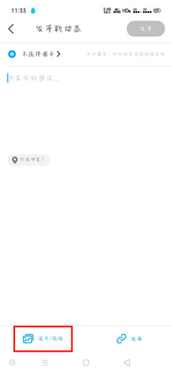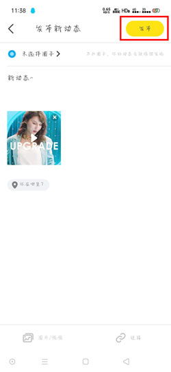 6、由于每个动态都需要配上文字,所以在输入栏输入文字,也可以选择给视频添加“圈子”,最后点击右上角的【发布】即可;