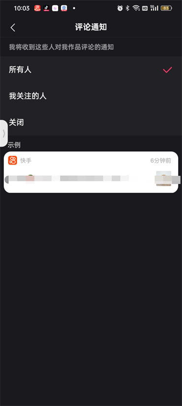 快手评论通知怎么设置