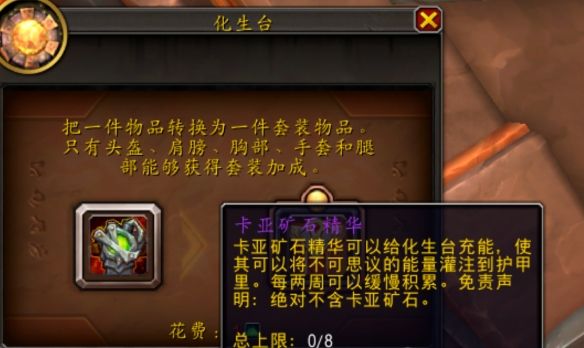 3、11.1装备转化需要使用卡亚矿石精华来对化生台进行充能。