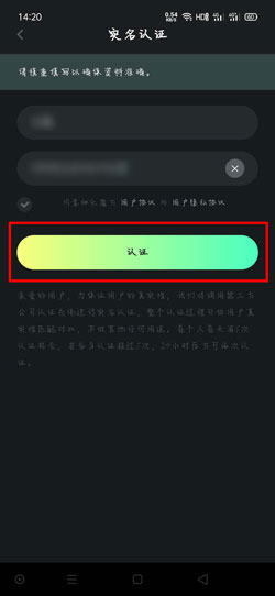 3、输入姓名 身份证号码,然后勾选“同意秘乐魔防用户协议与用户隐私协议”,点击【认证】即可,注意一个身份信息只能认证一个账号;