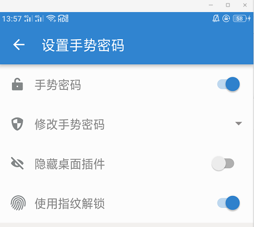 2、在设置中找到密码保护,点击进入可以看到可以设置手势密码。