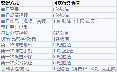 当我们发布的作品(视频、音频、专栏)获得其他用户投的1个硬币币,增加1个经验值,3个硬币增加3个经验值,每日无上限,长期有效;