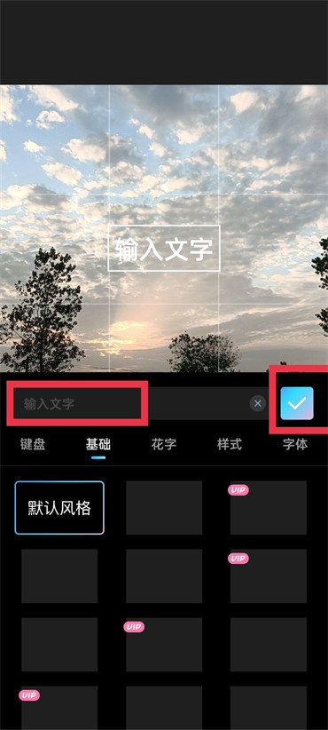 4.进入到此页面之中点击【输入文字】输入好之后点击【对号】图标即可;