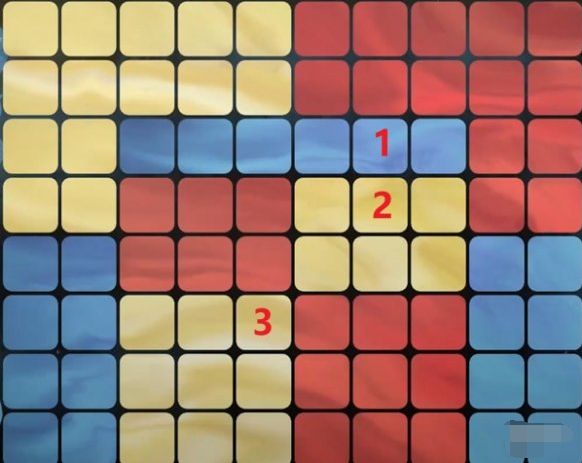 1、选择黄色,点击1的位置。