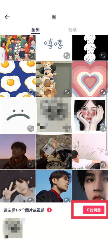 2.然后会进入到选择图片的页面,选择好要p的二维码图片之后点击右下方的【开始拼图】;