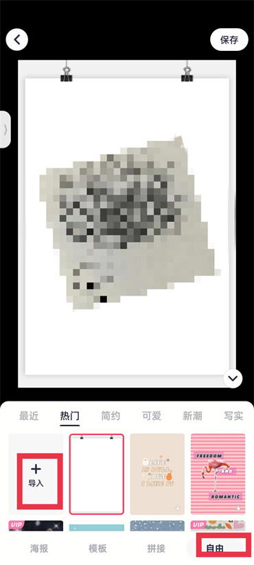 3.进入到拼图的页面之后点击右下角的【自由】然后再点击【导入】