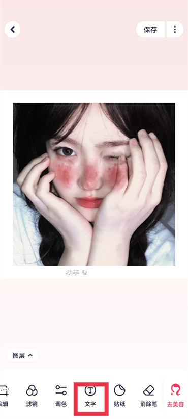 3.进入到修图的页面之后,在下面的功能区找到【文字】点击;