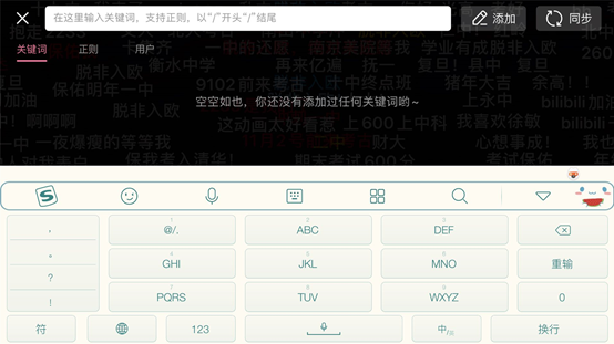 点击同步屏蔽列表功能,可以将其他移动设备中添加的屏蔽词添加到列表中哦~