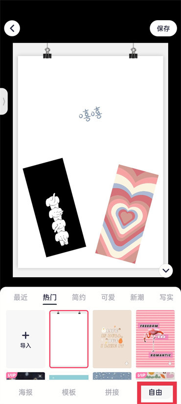 4.最后在自由的页面中点击图片,按照自己的喜好调整摆放即可;