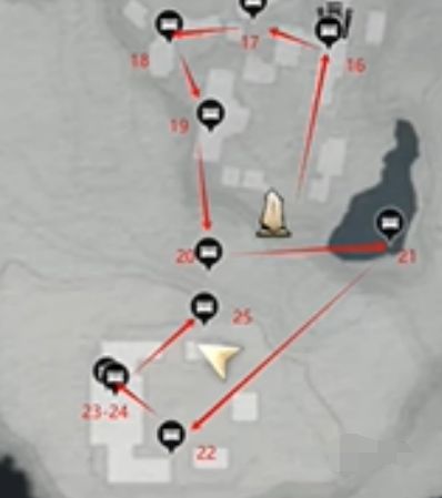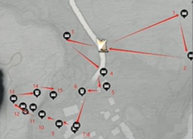 2、这15个宝箱的位置如下图所示,玩家可根据图中路线进行收集。